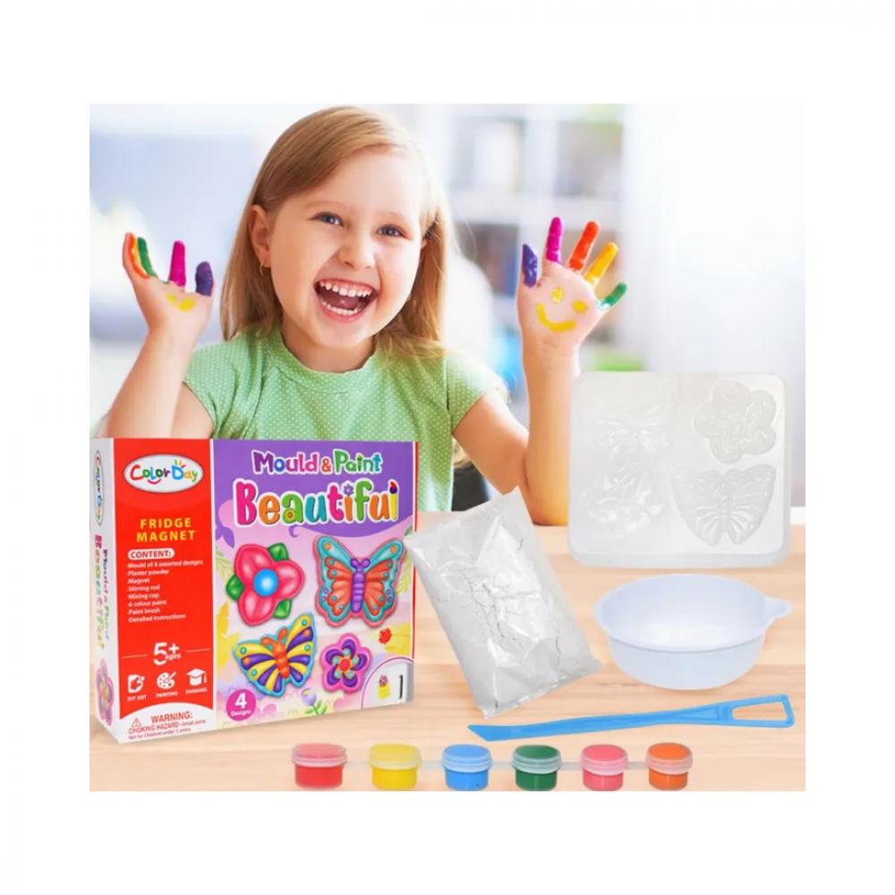 - باستخدام هذه اللعبة، سيقوم الأطفال بتجربة ممتعة وتعلم مراحل إعداد الجبس وصبه في القوالب المخصصة لإنشاء أشكال جبسية جميلة. بعد ذلك، سيأتي دورهم في تلوين الأشكال باستخدام الألوان المشمولة في العبوة.